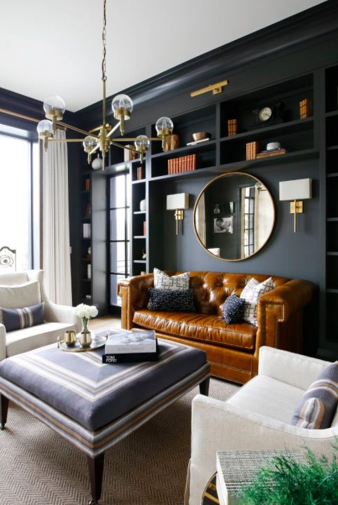 黑色背景在意大利风格中也较为常见,如果再加入皮质沙发和黄铜元素,整个空间精致高贵的味道就出来了。
