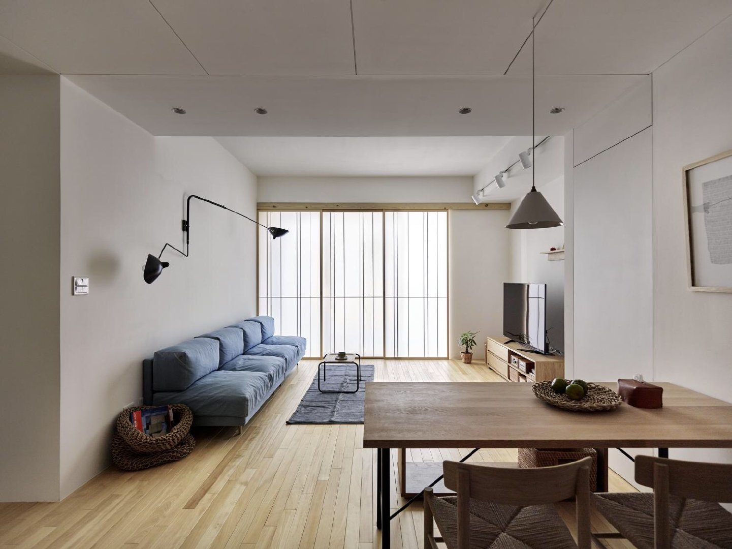 北欧的硬装色调偏冷,如果不想要那么冷可以与日式家具结合,原木色的家具中和冷清的气氛。
