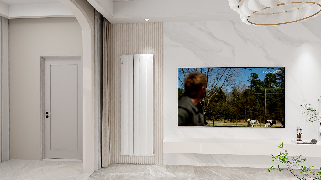 在设计电视背景墙时,要考虑到暖气片的外观与整体装修风格的协调性。目前市场上有多种款式的暖气片可供选择,如钢制板式、铸铁柱式、铜铝复合等,通过合理搭配,可以让暖气片成为电视背景墙的一部分,而不是突兀的存在。