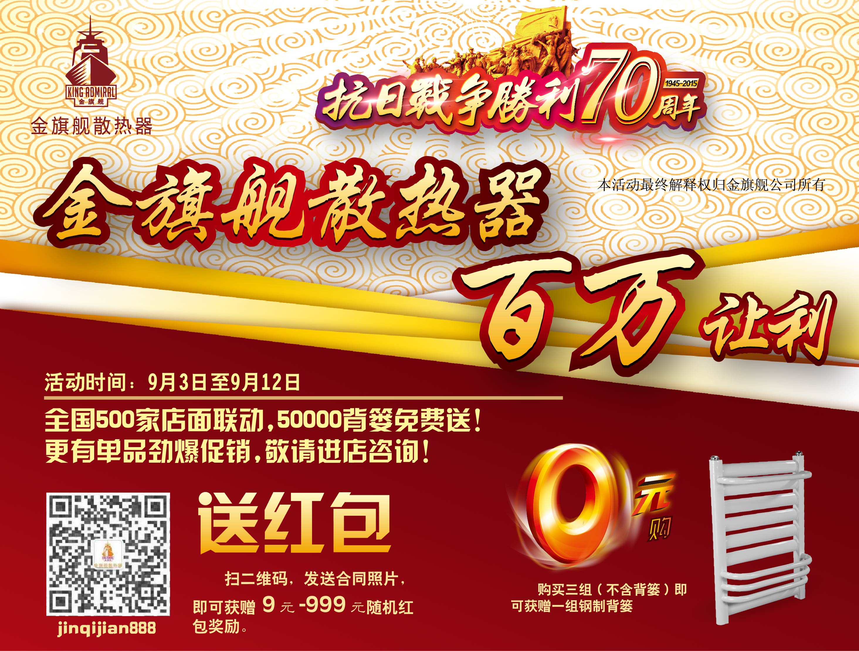 名称: 庆祝70年抗战胜利,金旗舰散热器百万让利