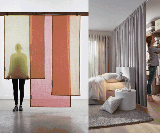 然而,小户型本就空间有限,如果非要用墙做硬隔断,房子会显得更加狭窄...这时候,软隔断也就应运而生啦!